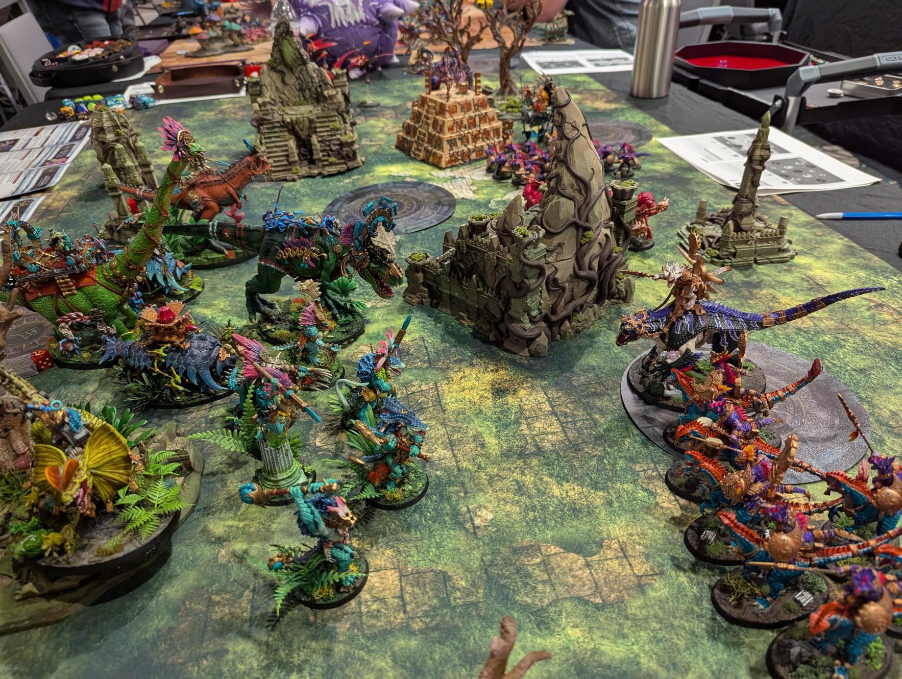 On the Saturday and Sunday of the event, the Age of Sigmar GT kicked off with 25 players fighting for the crown. Across our participants, there was a great showing of hobby, sportsmanship and competitiveness. We were even #blessed to have a dino v. dino grudge match round 1 between our club’s very own Taylor Barbieri and Drew Marfurt. They battled it out on our Jungle Rumble table to see who was the true apex predator.